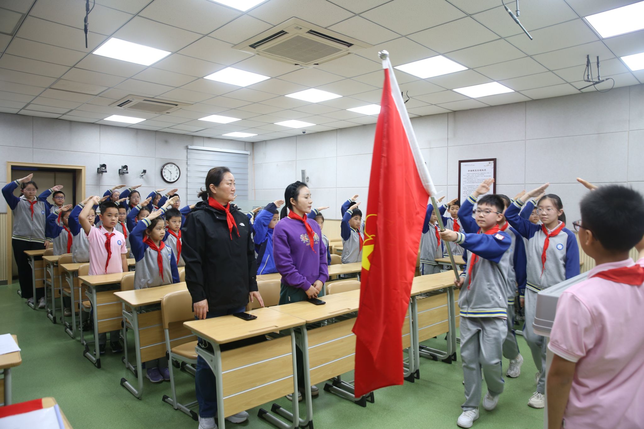 活动以升旗仪式拉开帷幕。国歌奏响,全体师生肃立,少先队员行队礼,老师们凝神注目,以赤诚致敬祖国。随后,出队旗、唱队歌依次进行,队旗缓缓行进,队歌嘹亮回荡,熟悉的旋律唤起每人心底的少先队情怀,播撒光荣与责任的种子。