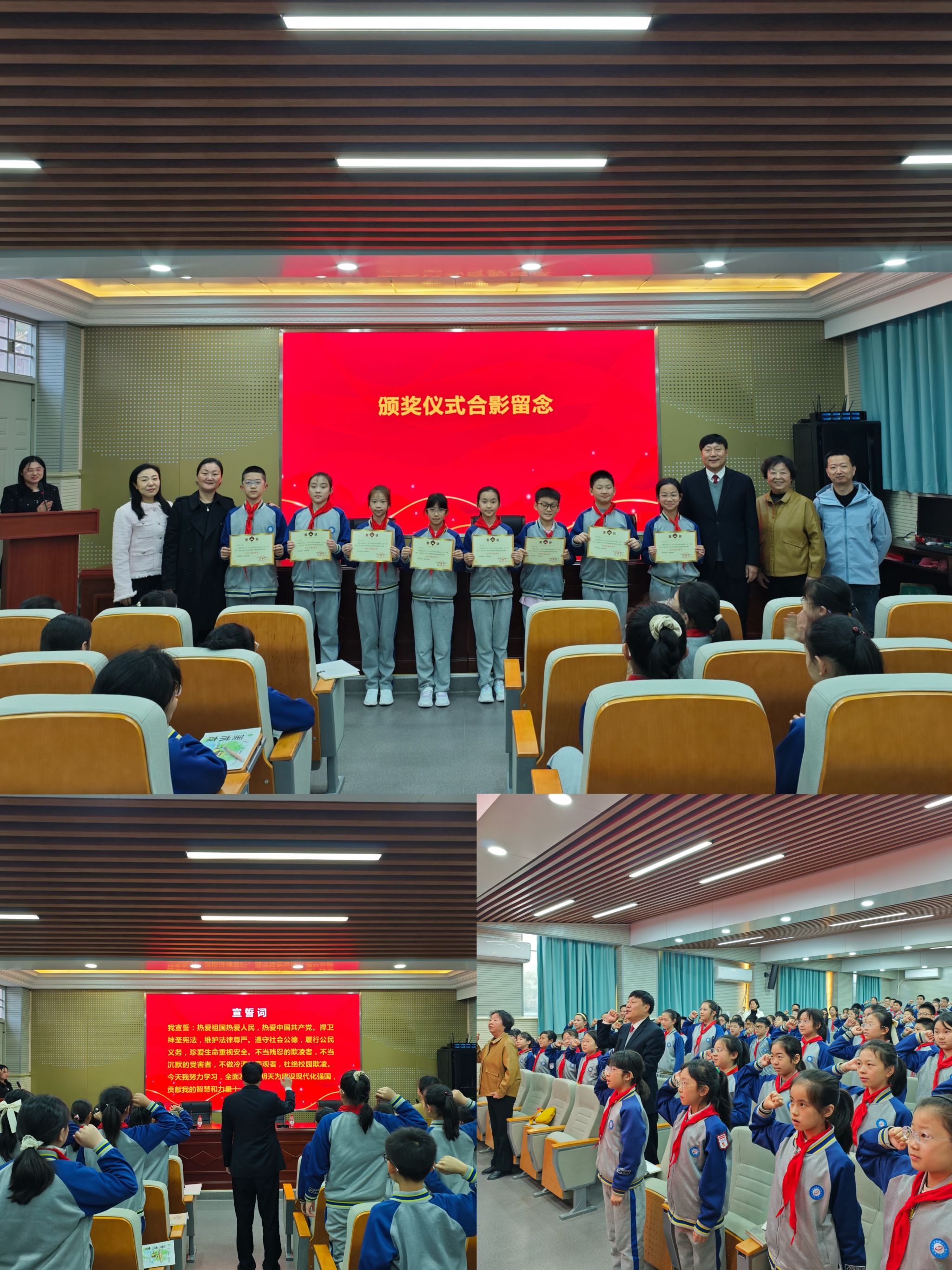 互动环节更添现场温度。 知识竞答中,同学们踊跃举手,在你一言我一语的交流里,将爱国知识与法治要点内化于心。随后,宣誓环节正式开始,全体师生肃立,跟随张钧巨教授庄严宣誓,一句句铿锵誓言落下,凝聚起守护校园、热爱祖国的共同信念。伴随着誓言余韵,师生们齐声歌唱《我和我的祖国》,歌声里满是对祖国的眷恋与自豪。作为报告会最后一项议程,校领导为竞答优异的同学颁发奖状,同学们们接过荣誉时的灿烂笑容,为活动画上圆满的句号。