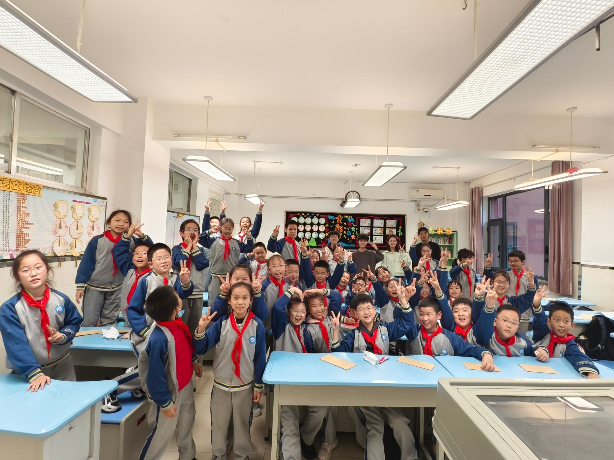 此前,四年级二班学生围绕“九三阅兵”致信团支部,抒发对盛景的震撼与对英雄的敬仰,此次高校学子带着亲笔回信赴校,延续跨学段情感联结。