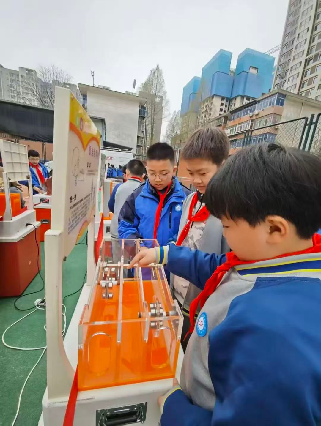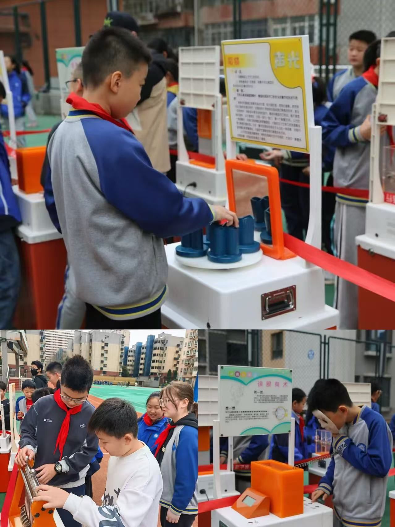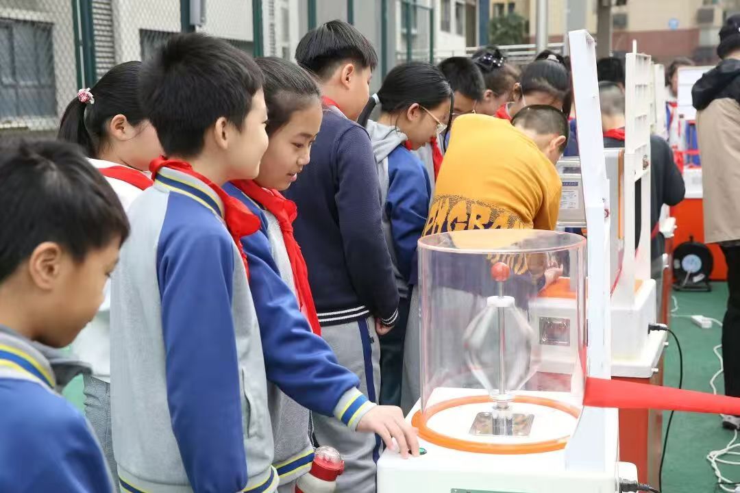 活动中,同学们有序排队、积极参与,在“玩中学、学中思、思中悟”,每一件展品都成为激发科学好奇心的窗口,每一次操作都化作探索科学奥秘的脚步。老师们全程陪伴引导,鼓励孩子们大胆尝试、主动提问,让科学探索的种子在孩子们心中生根发芽。